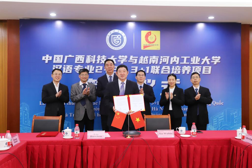 河工大校長硚春實表示,兩校辦學理念、學科設置相近,過去開展的合作項目成果喜人,雙方具有廣大的合作前景。他還展望未來在機械、汽車等專業與我校共同培養理工科人才,并對我校的支持與幫助表示感謝。最后雙方共同簽署漢語本科專業“2+2”、“3+1”聯合培養項目合作協議。