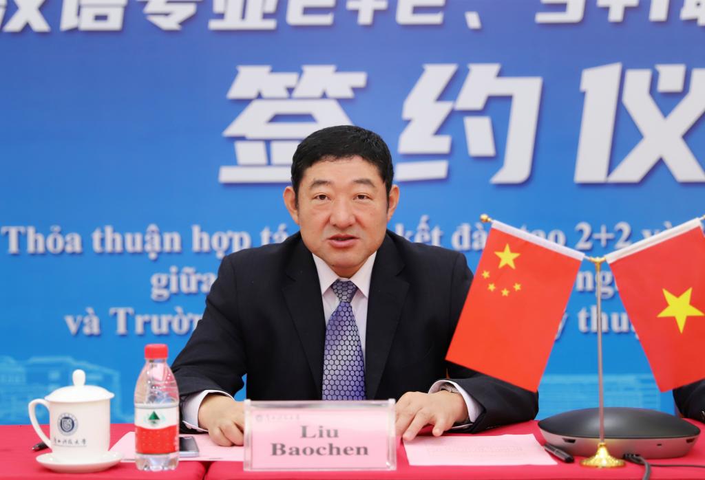 3月16日上午,我校與友好合作院校越南河內工業大學(以下簡稱“河工大”)就漢語本科專業“2+2”、“3+1”聯合培養項目簽約儀式在文昌校區辦公樓5—3會議室以網絡視頻會議的形式進行。學校黨委副書記、校長劉寶臣,學校黨委常委、副校長徐武彬參加簽約儀式。