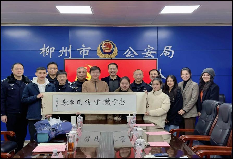 學院黨委書記譚鐵軍、副院長李燕洲率學院師生代表一行訪問了柳州市公安局出入境管理支隊。柳州市公安局出入境管理支隊支隊長黨支部書記金建強、副支隊長郭勇及相關民警對我院師生的到來表示熱烈的歡迎。