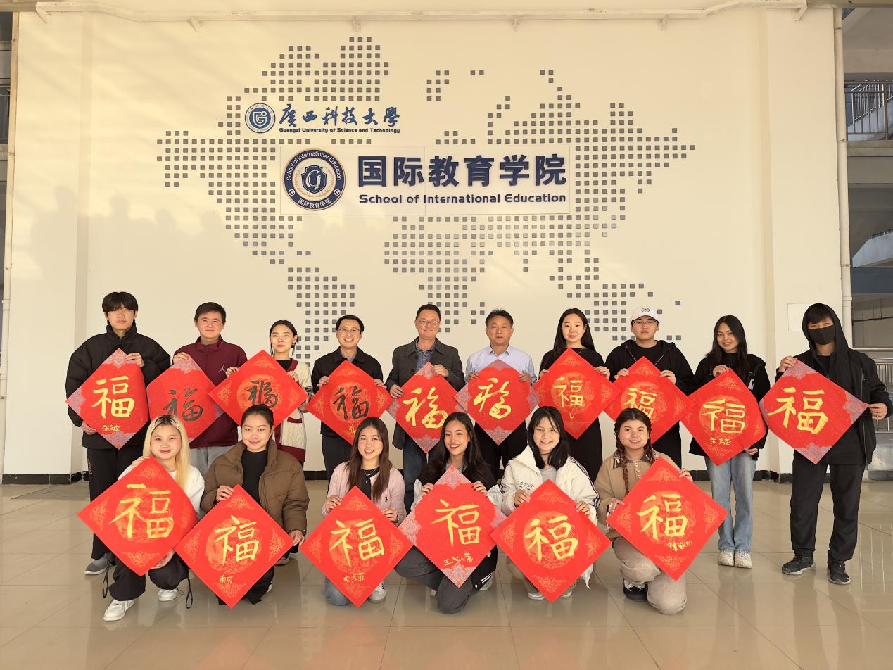 在新春佳節即將來臨之際, 1月20日,我院組織國際學生開展“迎新春 寫福字”春節傳統文化體驗活動,本次活動邀請了我校醫學部公共衛生系黨總支書記、中國書法家協會會員、中國硬筆書法協會學術委員韋耀寧教授進行指導,留校的國際學生參加了本次活動。