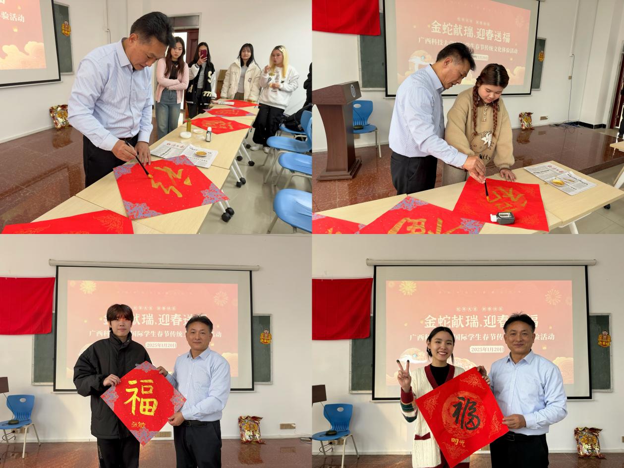 活動最后,學院院長尹輝俊、副院長李燕洲為每位國際學生送上了新春祝福和慰問禮包。此次“迎新春 寫福字”傳統文化體驗活動不僅讓國際學生在歡樂中感受到中國傳統文化的獨特魅力,也促進了對中國春節傳統文化與習俗的了解,讓他們在中國也能感受到家一樣的溫暖和文化的歸屬感。
