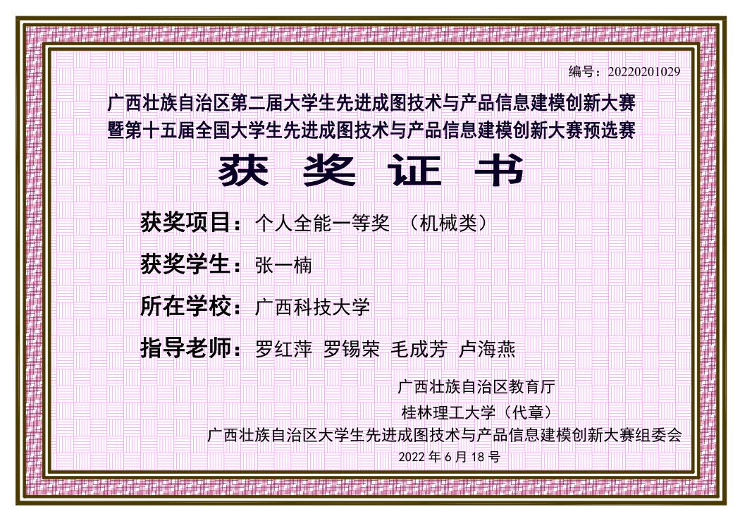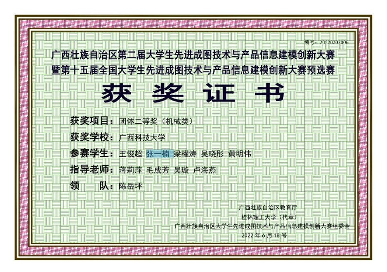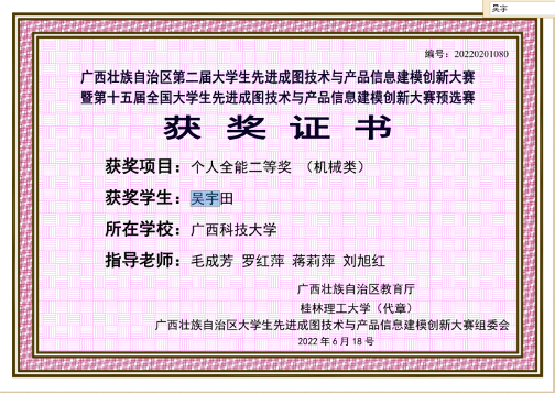 前段時間,我參加了“第十五屆‘高教杯’全國大學生先進成圖大賽”省賽。我們?nèi)6既〉昧藘?yōu)異的成績,這都是各位校領導,指導老師還有同學們辛勤付出的結(jié)果。通過這次比賽,我們對于團隊合作,刻苦奮進這兩個詞語有了更加深刻的認識。希望在國賽中我們還能繼續(xù)努力,斬獲大獎。