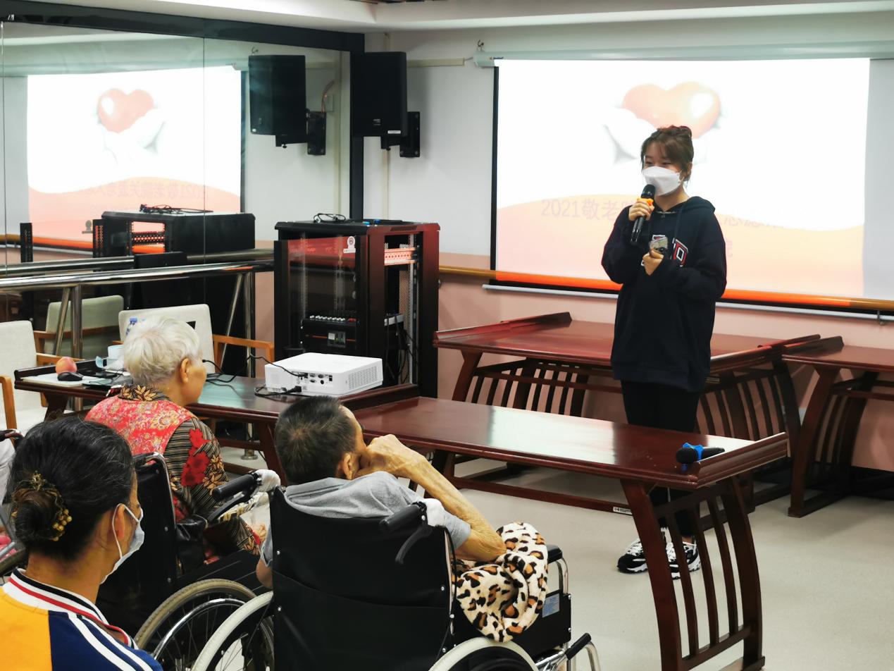 當天下午3點同學們到達服務中心布置活動現場,并和服務中心工作人員一同將老人們帶到了活動場地。慰問活動正式開始。