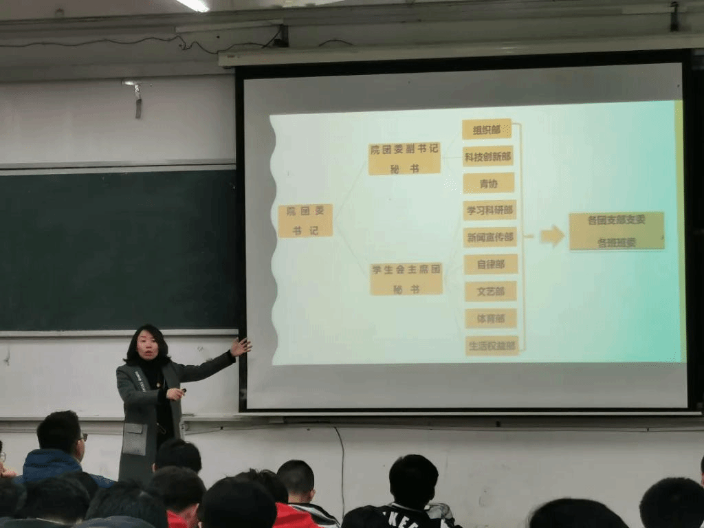 黨總支副書記 梁書杰老師為同學們講解團委學生會組織結構