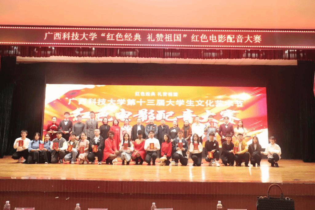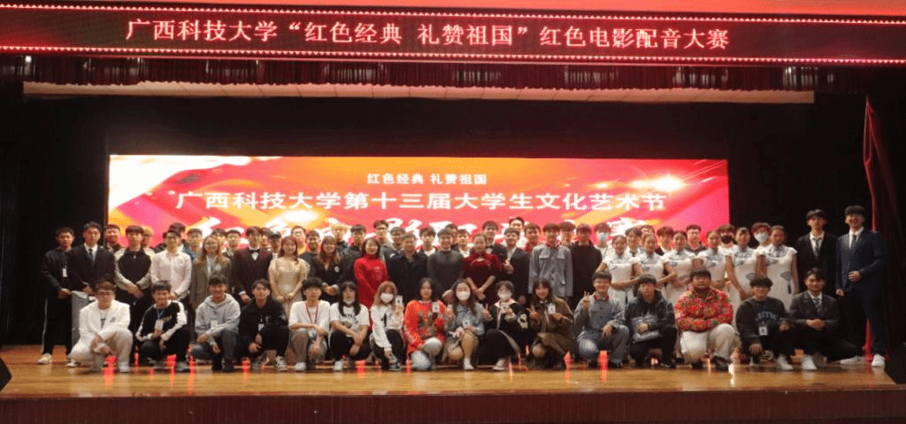 11月20日晚上7點,由國際教育學院承辦的廣西科技大學第十三屆大學生文化藝術節“ 紅色經典,禮贊祖國”紅色電影配音大賽在大學生活動中心隆重舉行。學校黨委常委、宣傳部部長、教師工作部部長、學校黨史學習教育領導小組辦公室副主任蔡亮,學校黨委常委、統戰部部長、學校黨史學習教育領導小組辦公室活動組組長麥林,校團委書記朱廣生,校團委副書記王湘林,國交處處長、國際學院院長張樹德,國際學院黨總支副書記梁書杰出席本次活動。