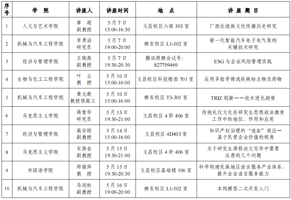 廣西科技大學2024年5月研究生學術講座預告(一)