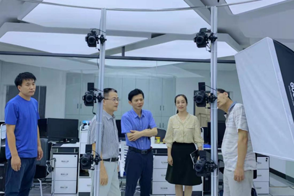 會前,黎東一行參觀走訪了學院一鍵建模和圖形圖像實驗室、虛擬現(xiàn)實開放教室、辦公場所和黨建活動室。