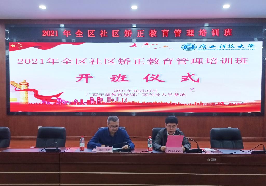 10月20日上午,由自治區司法廳主辦、廣西干部教育培訓廣西科技大學基地承辦的2021年全區社區矯正教育管理培訓班在東環校區國際學術報告廳開班。學校黨委常委、副校長黃永春參加開班儀式并致辭,自治區司法廳社區矯正管理局局長秦臻作為主辦方代表參加開班儀式。