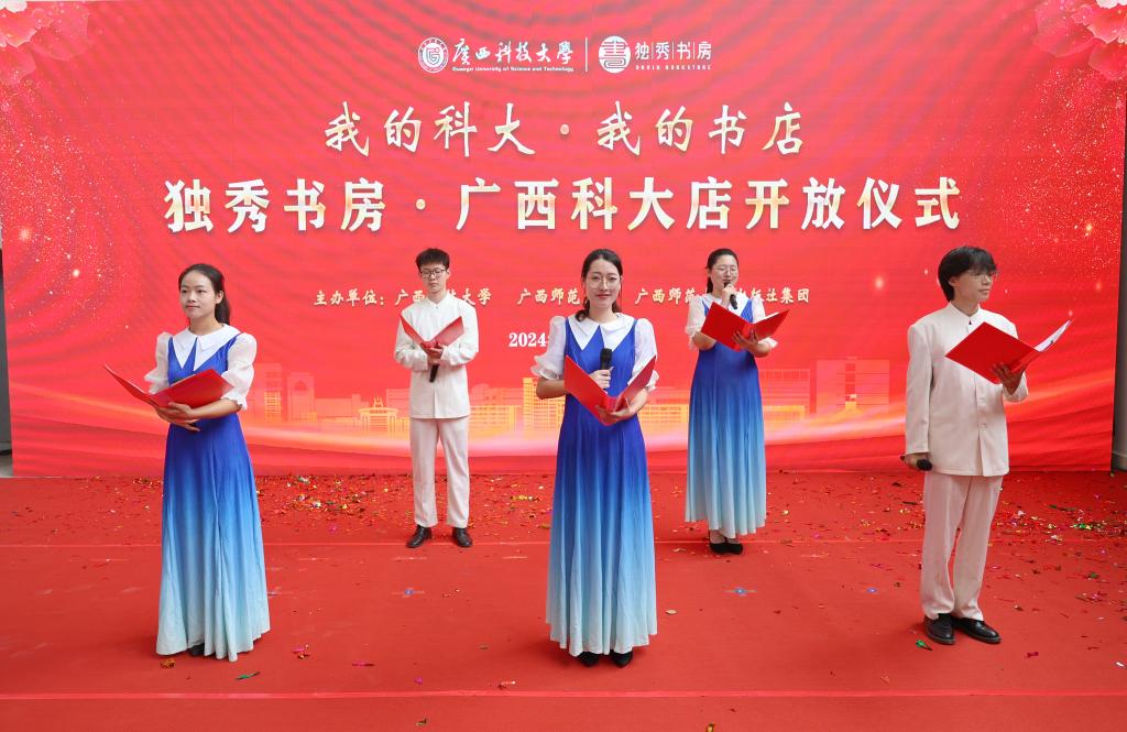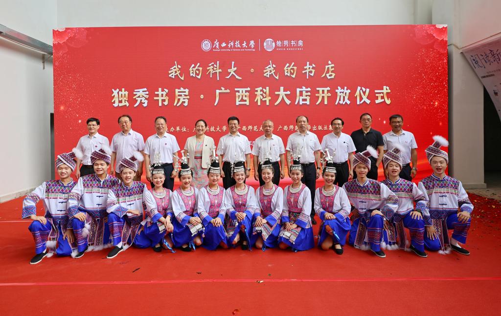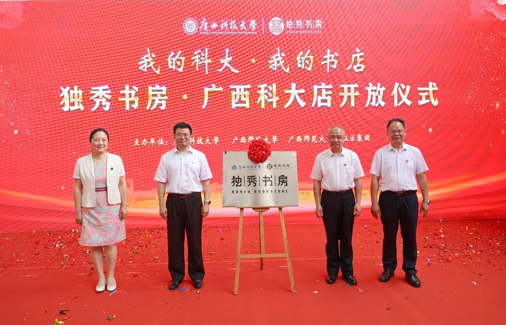 孟夏之月,萬物并秀。5月25日上午,學校以“我的科大·我的書店”為主題,在文昌校區大學生服務中心舉行獨秀書房·廣西科大店開放儀式。學校黨委書記趙君,廣西師范大學黨委副書記趙鐵,學校黨委常委、副校長秦小云,廣西師范大學出版社集團黨委書記、董事長黃軒莊等領導嘉賓出席儀式。