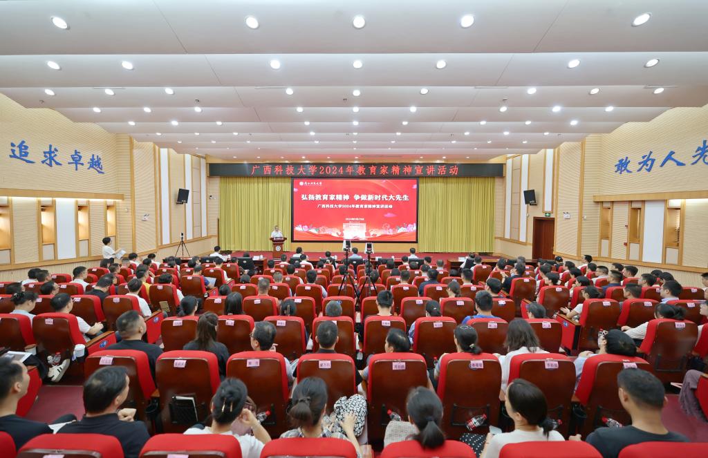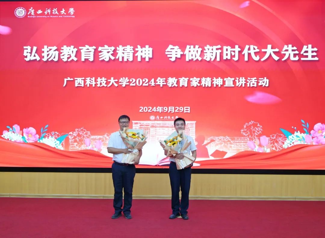 宣講會(huì)上,全國(guó)模范教師、生物與化學(xué)工程學(xué)院易弋教授講述了深耕水產(chǎn)養(yǎng)殖領(lǐng)域,將助力基層農(nóng)技與科研育人深度融合、把科研論文寫在祖國(guó)大地上的精彩故事;學(xué)校師德標(biāo)兵、土木建筑工程學(xué)院陳宇良副教授講述了數(shù)十年如一日資助家庭經(jīng)濟(jì)困難學(xué)子,創(chuàng)立廣西青少年科普公益專項(xiàng)基金,踐行“十年之約”的感人故事。他們用實(shí)際行動(dòng)生動(dòng)詮釋了教育家精神的精髓要義、價(jià)值內(nèi)核和實(shí)踐要求,展現(xiàn)了教育家精神的偉大力量,激勵(lì)全校廣大教師和教育工作者堅(jiān)定不移地踐行為黨育人、為國(guó)育才的初心使命。