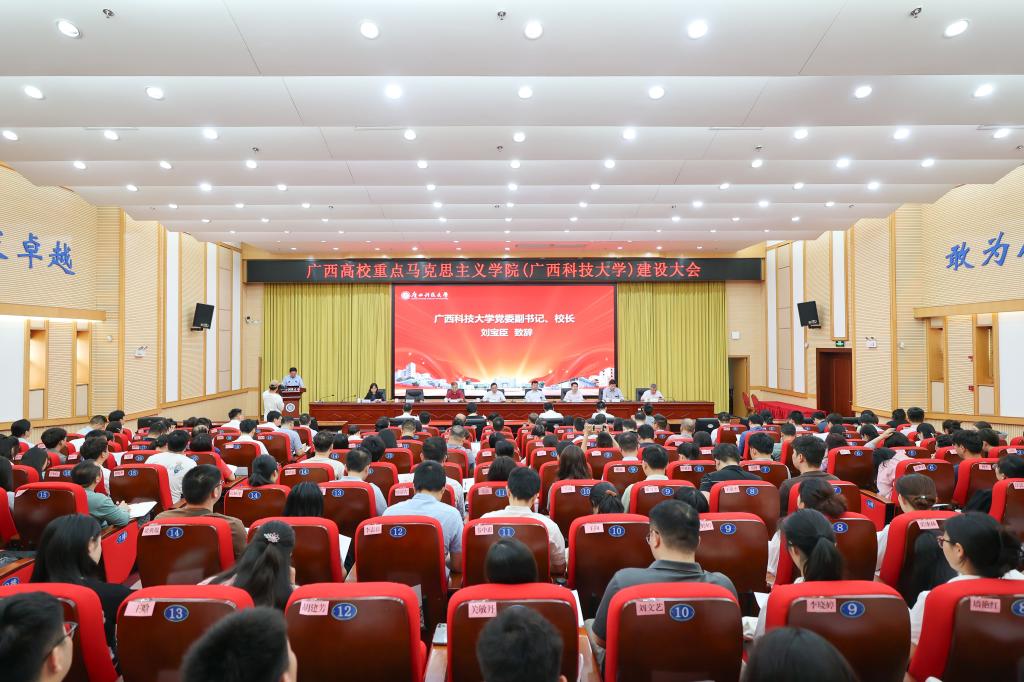 4月19日上午,廣西高校重點馬克思主義學院(廣西科技大學)建設大會在文昌校區多功能報告廳召開。柳州市委常委、宣傳部部長、教育工委書記甘毅,自治區黨委宣傳部理論處副處長黃深思,學校黨委書記趙君,黨委副書記、校長劉寶臣,黨委副書記張發欽,華中師范大學馬克思主義學院院長毛華兵等領導和專家出席會議。河池學院等桂中高校馬克思主義學院代表、學校師生共200多人參加會議。大會由學校黨委常委、副校長鄧朗妮主持。