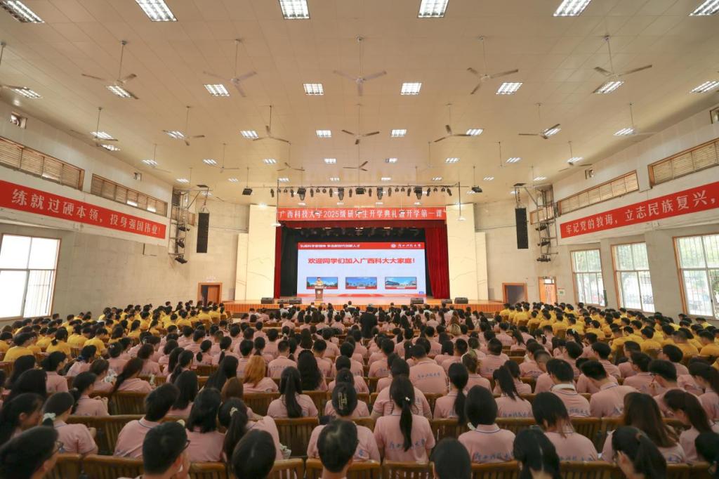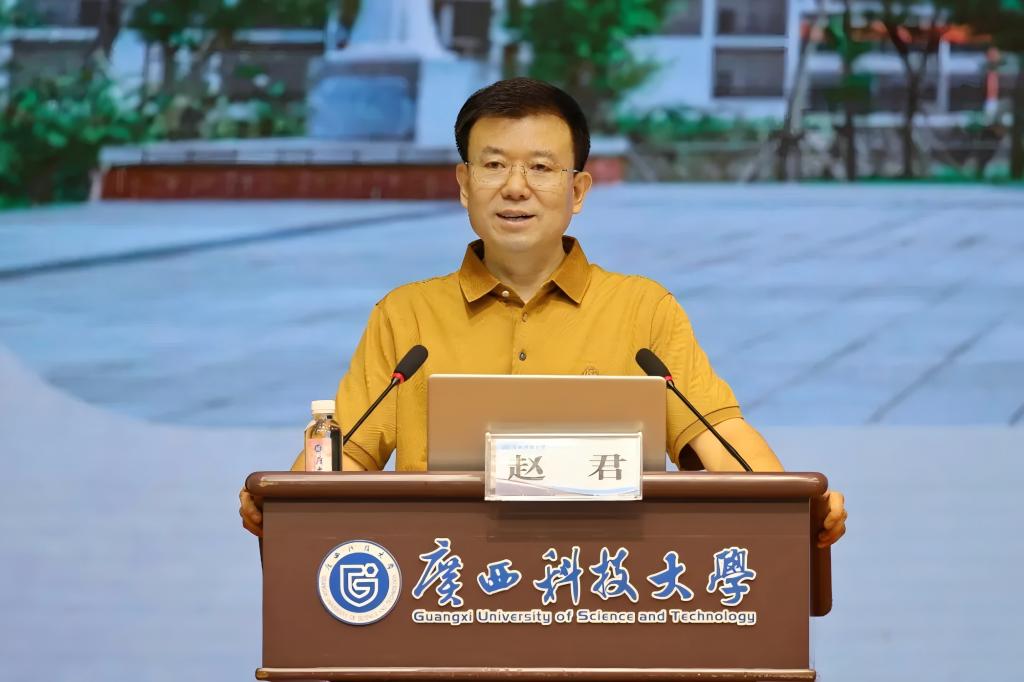 趙君圍繞“何為廣西科技大學(xué)”“何為研究生的使命”“廣西科大研究生何為”三個問題進(jìn)行了分析和解答。他以“歷史底蘊有厚度、文化積淀有深度、發(fā)展態(tài)勢有力度”為脈絡(luò),系統(tǒng)闡釋廣西科大的獨特精神和品格。趙君指出,教育的根基在于學(xué)生,初心在于育人。學(xué)校竭誠為每一位懷揣夢想的學(xué)子搭建廣闊舞臺。只要同學(xué)們有志向、有熱情、肯鉆研,就能找到專屬的角色定位,擁有人生出彩的璀璨舞臺。