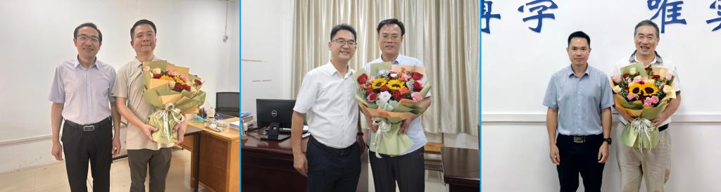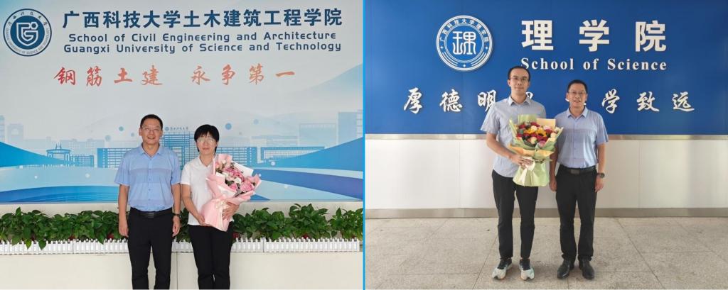 左圖:學校黨委常委、副校長李健(左)慰問土木建筑工程學院楊曉云老師。右圖:學校黨委常委、副校長李健(右)慰問理學院李信飛老師。