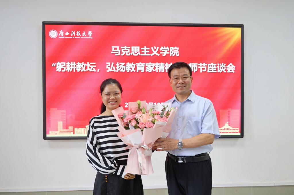 學校黨委書記趙君(右)慰問馬克思主義學院潘何琴老師