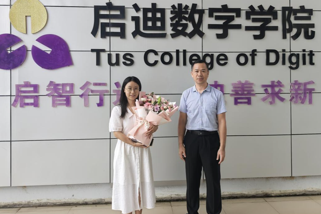 學校黨委常委、紀委書記符志光(右)慰問啟迪數字學院陳雨婕老師