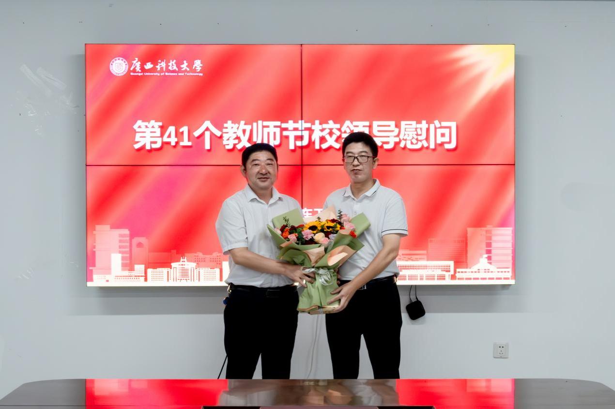 右圖:學校黨委常委、宣傳部部長、教師工作部部長戚杰強(左)慰問電子工程學院王智文老師