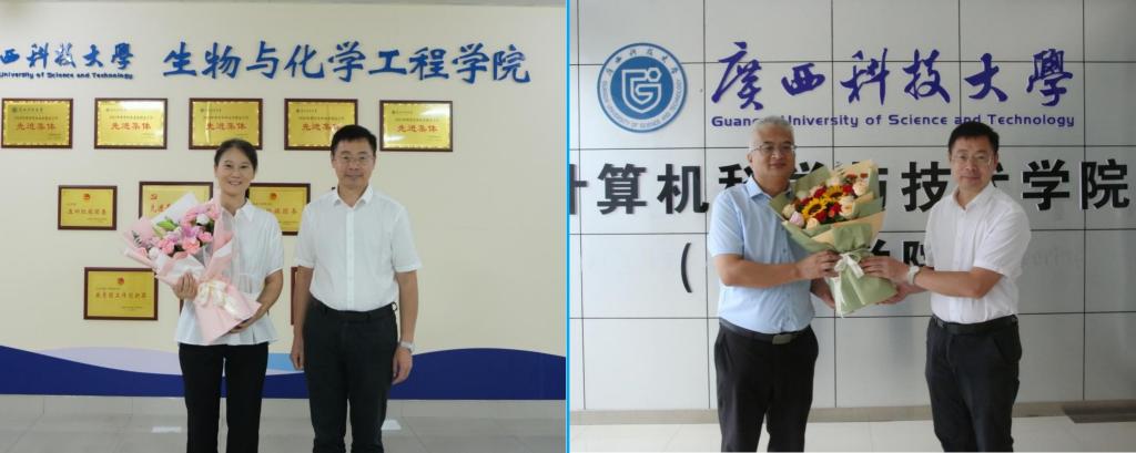 左圖:學校黨委副書記賓月景(右)慰問生物與化學工程學院杜娟老師。右圖:學校黨委副書記賓月景(右)慰問計算機科學與技術學院(軟件學院)卜登立老師。