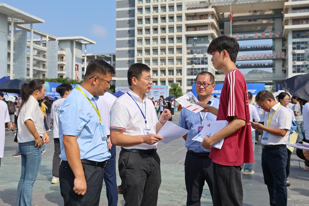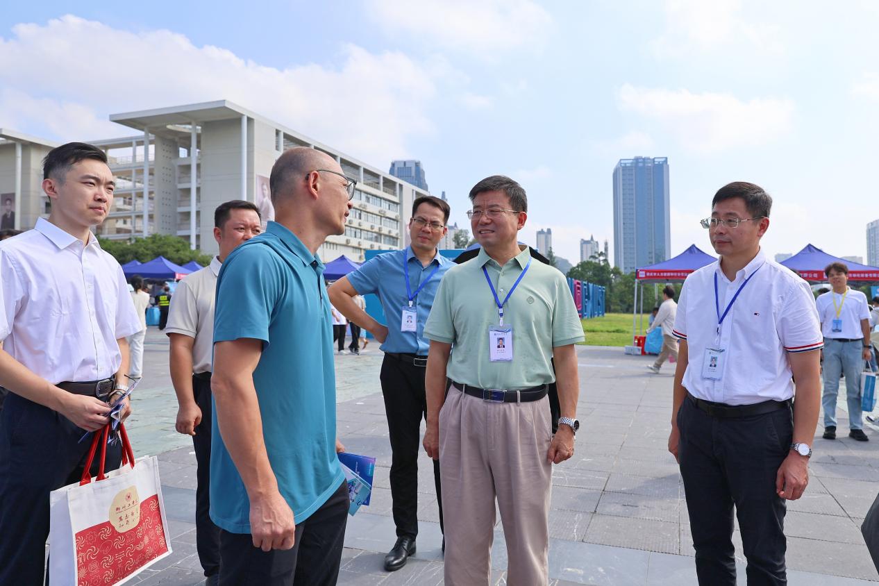 10月16日上午,學校2025年秋季校園雙選會在文昌校區宗元南廣場舉行。學校黨委書記趙君,黨委副書記賓月景到雙選會現場指導工作,與各地市人社局相關領導及企業代表深入交流,推薦畢業生。