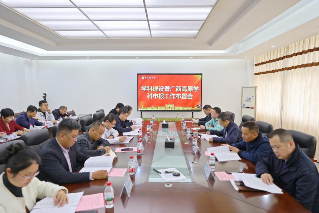 會上,規劃處負責人介紹了廣西高原學科申報要求及工作安排。與會人員圍繞學科建設和廣西高原學科申報工作進行了深入研討與交流。