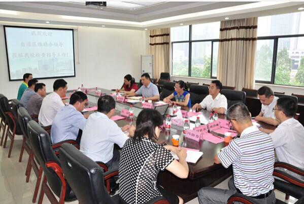 5月27日上午,自治區信訪局副局長蔣漢學、自治區信訪局副處長唐樹梅、自治區信訪局主任科員郭燕紅、柳州市委副秘書長羅立明、柳州市教育局黨委副書記吳桂貞、柳州市維穩辦副主任金昕組成的維穩辦督查組一行6人到我校檢查指導維穩工作。徐武彬副校長代表學校對我校維穩工作開展情況進行匯報。黨辦、宣傳部、學工處、保衛處、后勤處、研究生處、國交處和網絡中心等有關部門負責人參加匯報會。