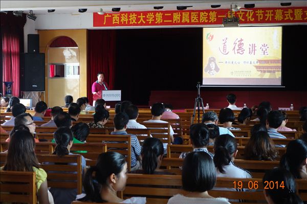 6月19日下午,第二附屬醫院在該院紅樓二樓禮堂舉辦以“踐行社會主義核心價值觀”為主題的全院“道德講堂”活動。院領導班子全體成員及醫院職工共300余人參加活動。