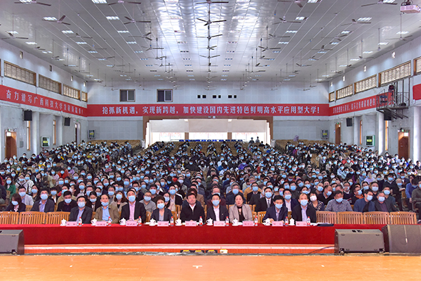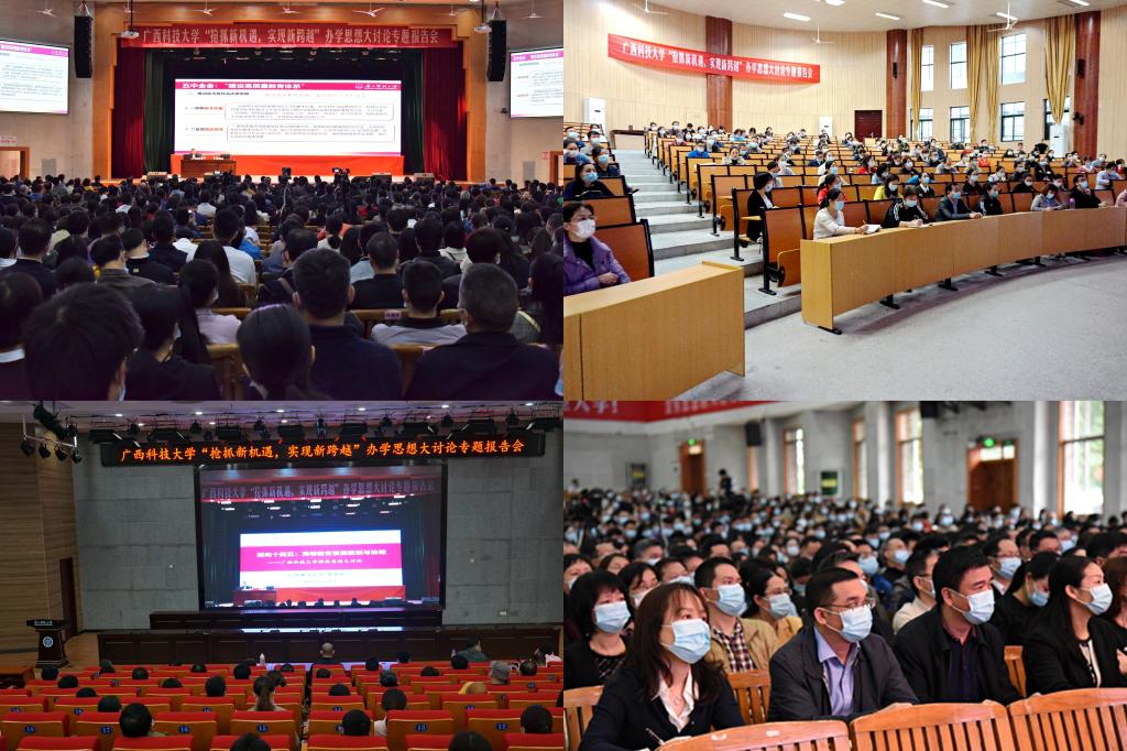 4月28日,我國著名高等教育專家、全國文化名家暨“四個一批”理論人才、廣西優秀專家、廣西師范大學校長、廣西社科聯副主席賀祖斌,應邀為我校辦學思想大討論作題為《面向“十四五”:高等教育發展規劃與治理》的專題報告。報告會在東環校區大禮堂舉行,學校領導、全體中層干部、教職員工1100多人參加報告會。學校黨委書記趙君主持報告會。柳石校區、柳東校區設立分會場,近300人同步觀看報告會直播。