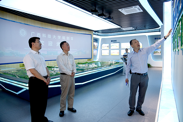 報告會前,在學校黨委書記趙君的陪同下,尚鋼教授參觀了學校規劃館。