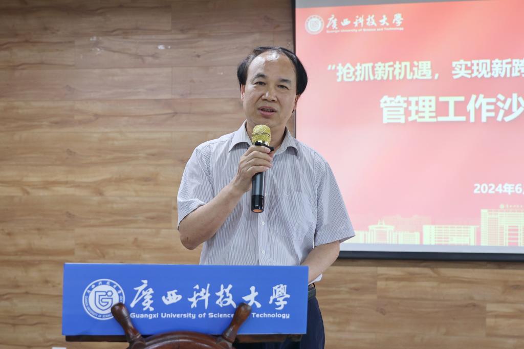 趙君強調,辦好廣西科大的事,只能靠廣西科大人主動作為。在事關學校事業發展的關鍵時期,全體中層領導干部要敢于擔當,為全面打贏“申博”攻堅戰發揮好“關鍵少數”的示范引領作用。一是正確認識自己。要回答好“我是誰、為了誰、依靠誰”的問題,聚焦本崗位的角色定位與工作職責,緊密團結領導班子成員,緊緊依靠廣大師生員工,不斷提升工作統籌協調能力,高質量完成工作任務,高水平服務師生員工。二是正確對待事業。要以“功成不必在我”的精神境界和“功成必定有我”的責任擔當,正確處理好“小我”與“大我”的關系,大力踐行“敢為人先、百折不撓,務實創新、追求卓越”的廣西科大精神,以奮發有為的姿態干事創業。三是努力干好事業。要強化理論武裝,堅定正確的政治方向;要樹立“今天再晚也是早,明天再早也是晚”的效率意識,以“等不起”的緊迫感、“慢不得”的危機感、“坐不住”的責任感推動“申博”各項任務落地見效。