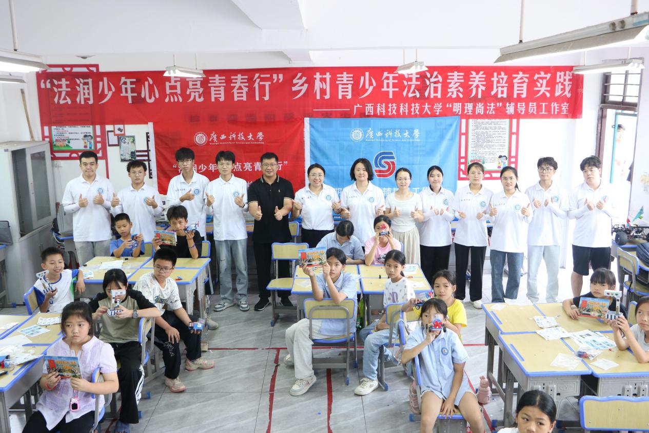 7月13日—16日,我校“法潤少年心 點亮青春行”鄉村青少年法治素養培育實踐隊赴融安縣泗頂鎮中心小學開展實踐活動。實踐隊基于《青少年法治教育大綱》的要求,設計了模擬選舉、法治紅綠燈、童畫繪法、指紋取樣等實踐活動,讓鄉村兒童“零距離”接觸,“全方位”感受,“沉浸式”接受法治教育、提升法律思維、強化法治理念。