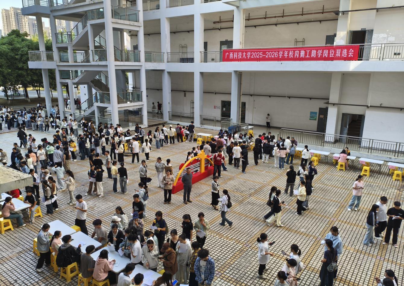 10月28日下午,學校在文昌、柳石、柳東三校區同時舉辦2025—2026學年校內勤工助學崗位雙選會。雙選會提供行政管理助理、實驗室助理、新媒體運營、公共服務等970個崗位,吸引了全校1400多名學生前來應聘,為44個校內用工單位與學生搭建雙向交流平臺。