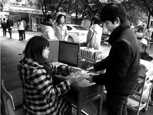 3月4日上午,在廣西科技大學學生宿舍區(qū),該校圖書館在此開展“圖書下宿舍”活動。管理員精心挑選了名家小說、人物傳記等近300冊圖書,帶到宿舍區(qū)宣傳,吸引“讀者”。據(jù)介紹,開展此類活動的目的,是想把學生吸引到圖書館,培養(yǎng)他們紙質(zhì)閱讀的習慣。圖為辦理點不少學生前來借閱圖書。