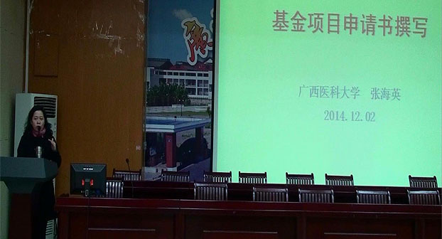 12月2日下午,廣西醫科大學全科醫學院副院長張海英教授應邀到我校作了題為“基金項目申請書撰寫”的學術講座。講座在醫學院1310學術報告廳舉行。報告會由文玉萍副院長主持,我校醫學院、第一臨床醫學院近100名教師聆聽了講座。