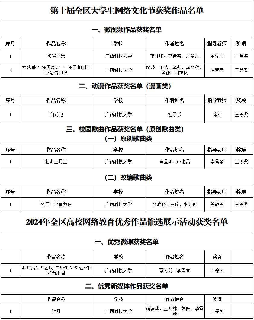 近日,由自治區(qū)教育廳和自治區(qū)黨委網(wǎng)信辦聯(lián)合舉辦的第十屆全區(qū)大學(xué)生網(wǎng)絡(luò)文化節(jié)和2024年全區(qū)高校網(wǎng)絡(luò)教育優(yōu)秀作品推選展示活動(dòng)獲獎(jiǎng)名單公布,我校師生共有7個(gè)作品獲獎(jiǎng),其中二等獎(jiǎng)2項(xiàng),三等獎(jiǎng)5項(xiàng)。