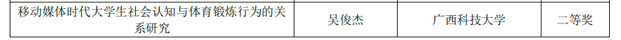 近日,自治區教育廳公布了第十四屆學生運動會體育科學論文獲獎名單。體育學院教師表現突出,共3篇論文入選獲獎名單。其中,吳菊花博士、吳俊杰博士的論文榮獲高校組二等獎,白慶平博士的論文榮獲高校組三等獎。