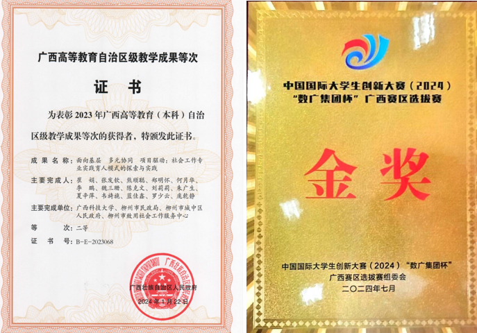 獲自治區(qū)級(jí)教學(xué)成果獎(jiǎng)和中國(guó)國(guó)際大學(xué)生創(chuàng)新大賽區(qū)級(jí)金獎(jiǎng)