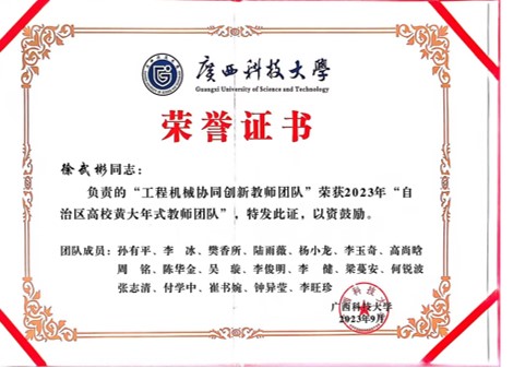 學院教師團隊獲批廣西高校黃大年式教師團隊榮譽證書