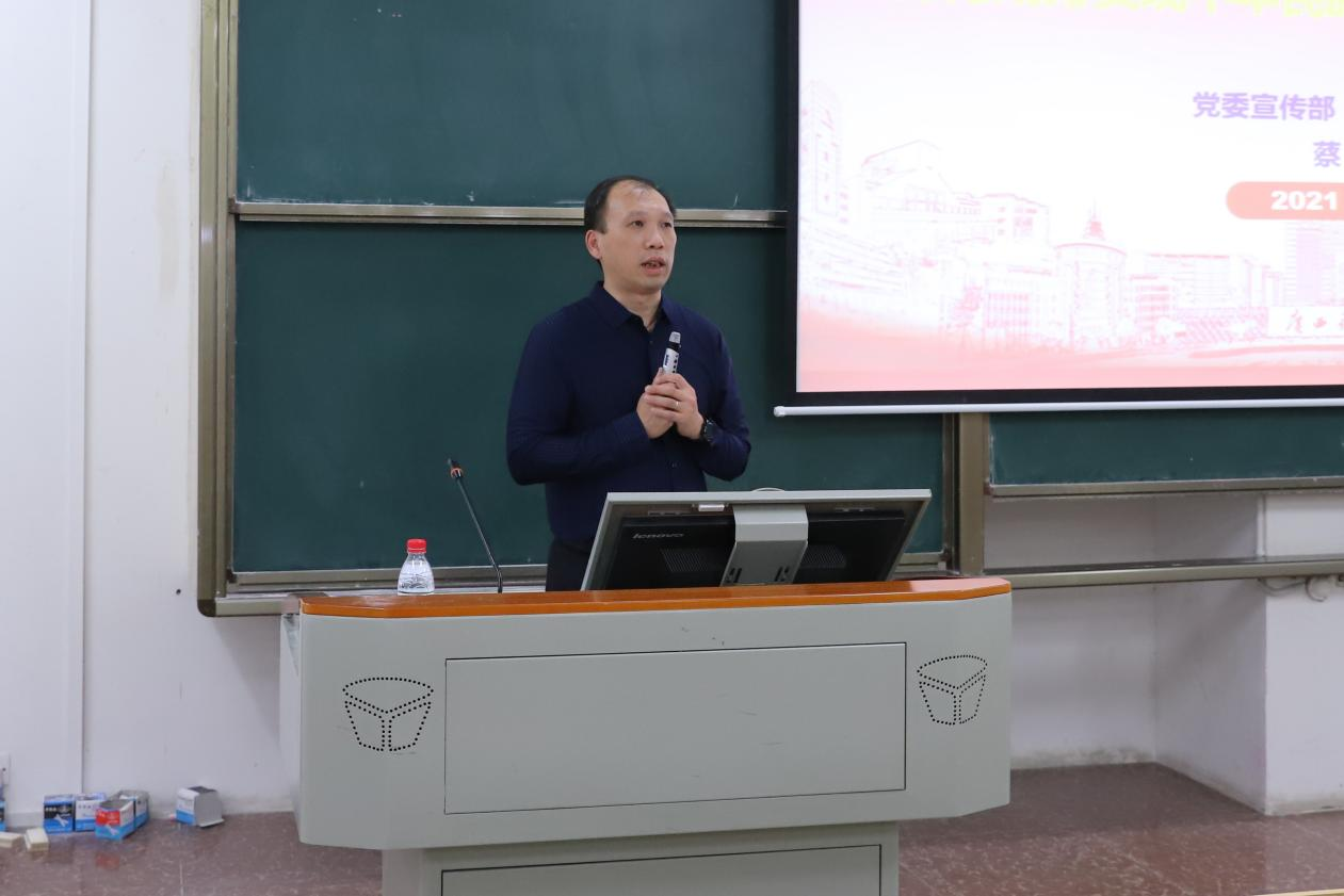 為深入學習貫徹習近平總書記在慶祝中國共產黨成立100周年大會上的重要講話精神,進一步推動黨史學習教育走深走實,10月26日下午,校黨委常委、宣傳部部長、教師工作部部長蔡亮以《學習貫徹習近平總書記“七一”重要講話精神,努力成為實現中華民族偉大復興的先鋒力量》為題,在東環校區第六教學樓北103教室作集中宣講,電計學院軟件201班、軟件202班、軟件203班全體學生聆聽了本次宣講。