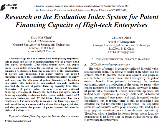 周志娟,女,經(jīng)濟(jì)與管理學(xué)院2016級(jí)碩士研究生,自治區(qū)研究生創(chuàng)新項(xiàng)目“高新技術(shù)企業(yè)專利融資能力評價(jià)指標(biāo)體構(gòu)建與測度研究”負(fù)責(zé)人。該項(xiàng)目在現(xiàn)有理論基礎(chǔ)上,以專利運(yùn)營過程為主線,凸顯高新技術(shù)企業(yè)專利融資能力在整個(gè)專利成果轉(zhuǎn)化中的重要地位,即專利融資能有效地解決企業(yè)實(shí)現(xiàn)專利轉(zhuǎn)化績效的資金瓶頸。通過構(gòu)建高新技術(shù)企業(yè)專利融資能力的評價(jià)指標(biāo)體系,以期能夠?yàn)榫哂兄R(shí)產(chǎn)權(quán)優(yōu)勢的高新技術(shù)企業(yè)進(jìn)行專利融資能力測度時(shí)提供理論借鑒,為高新技術(shù)企業(yè)以專利為核心的融資決策提供建議,充分利用專利資源,拓寬融資途徑,高效實(shí)施專利轉(zhuǎn)化。