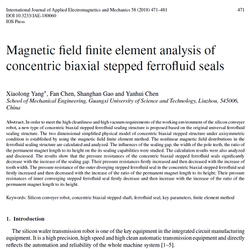 陳帆,男,機(jī)械與交通工程學(xué)院2016級(jí)碩士研究生,自治區(qū)研究生創(chuàng)新項(xiàng)目“磁流體往復(fù)密封設(shè)計(jì)與實(shí)驗(yàn)研究”負(fù)責(zé)人。本項(xiàng)目針對工程機(jī)械液壓缸存在的內(nèi)泄漏和外泄漏問題,以液壓缸磁流體往復(fù)密封為研究對象,從磁流體運(yùn)動(dòng)方程出發(fā),建立液壓缸磁流體往復(fù)密封耐壓公式;采用磁路法和磁場有限元法初步設(shè)計(jì)出磁流體往復(fù)密封結(jié)構(gòu);采用實(shí)驗(yàn)的方法驗(yàn)證磁流體往復(fù)密封理論的正確性;采用數(shù)值和實(shí)驗(yàn)方法研究影響磁流體往復(fù)密封的關(guān)鍵參數(shù),并對往復(fù)密封結(jié)構(gòu)進(jìn)行優(yōu)化和改進(jìn)。該項(xiàng)目完成并發(fā)表SCI論文2篇,申請并授權(quán)實(shí)用新型專利2項(xiàng),授權(quán)發(fā)明專利1項(xiàng)。