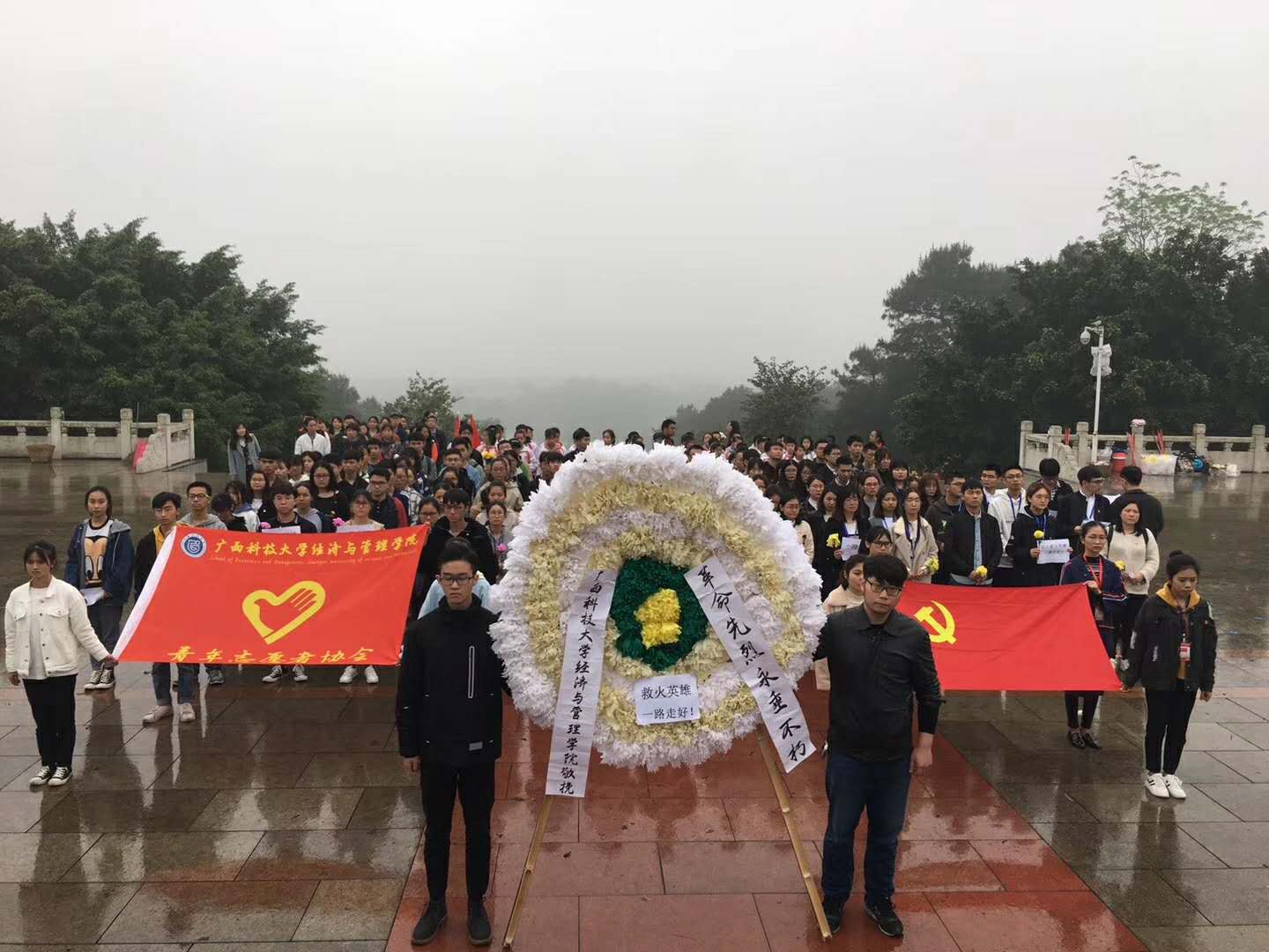 為表達對英烈的感激與緬懷之情,弘揚愛國主義精神,經管學院和研究生工作處聯合舉行以“緬懷先烈,告祭英魂”為主題的西山烈士陵園祭奠活動。參加人員有研究生工作處研究生管理科科長韋劍老師、朱慶垚老師;經管學院研究生黨支部書記蔡永林老師、黨建辦公室主任翁文雯老師;經管學院本科主要學生骨干、研究生黨支部全體成員;校研究生會成員等。