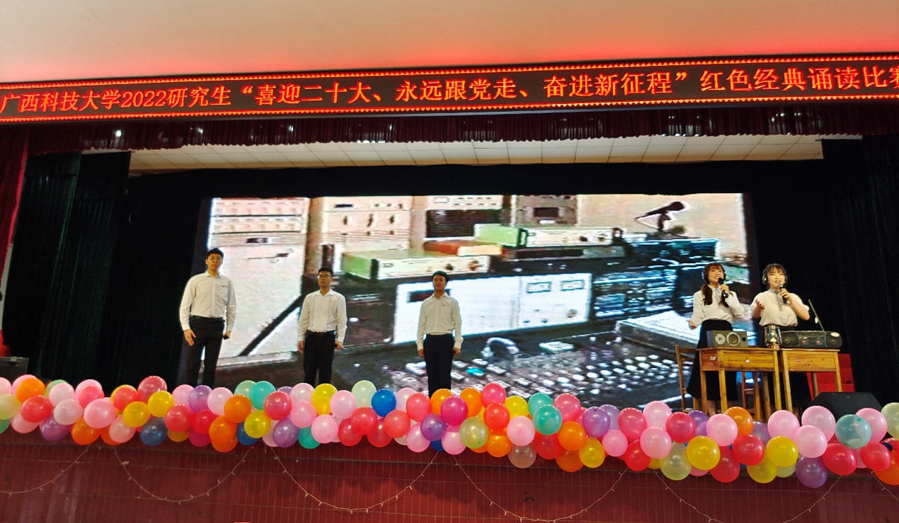 由研究生工作部主辦的2022年研究生科技文化節之研究生紅色經典詩歌誦讀比賽于5月28日下午在東環校區大學生活動中心順利舉行,引領大家重溫紅色崢嶸歲月,抒發愛國情懷。評委由學生工作部(處)梁貞巧副部(處)長、資助中心高小堯副主任、人文藝術與設計學院胡艷秋老師、研究生工作部吳幸雅老師等四位老師擔任。研究生工作部(處)楊年炯副部(處)長以及研究生管理科老師出席了比賽。