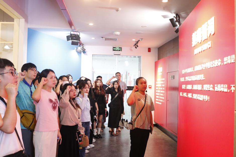 隨后,學(xué)員們跟隨講解員的引導(dǎo),踏入了一個特殊的展區(qū)——“認識吸毒自述屋”。這個區(qū)域通過模擬真實場景和吸毒者講述親身經(jīng)歷,讓學(xué)員們深刻感受到了毒品的危害,從而進一步增強了大家防毒拒毒的意識。最后,全體青馬班學(xué)員共同進行禁毒宣誓。學(xué)員們嚴肅地表示,他們將攜起手來,堅決打贏新時代禁毒人民戰(zhàn)爭,共同營造一個無毒、健康的社會環(huán)境。