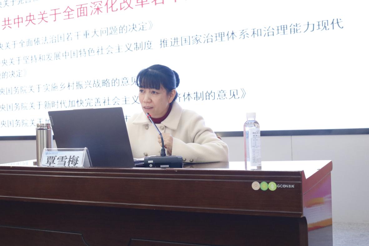 會(huì)上,覃雪梅老師作《學(xué)習(xí)貫徹黨的二十屆三中全會(huì)精神》專題講座。她介紹了全會(huì)的基本情況,并以大會(huì)審議通過的《中共中央關(guān)于進(jìn)一步全面深化改革、推進(jìn)中國式現(xiàn)代化的決定》為切入點(diǎn),從“為什么改、朝哪里改、怎么改、如何落實(shí)”四個(gè)方面帶領(lǐng)大家學(xué)習(xí)。她還對(duì)當(dāng)代青年黨員和團(tuán)員提出了建議與期待。她認(rèn)為,學(xué)生干部應(yīng)認(rèn)真落實(shí)黨的二十屆三中全會(huì)精神,強(qiáng)化理論武裝、學(xué)深悟透精神實(shí)質(zhì)、深植為民情懷、崇尚求真務(wù)實(shí),為推進(jìn)中國式現(xiàn)代化貢獻(xiàn)青春力量。