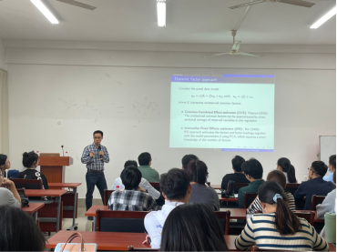 為了提升學院研究生的科研能力,10月28日下午,理學院曹石云博士為學院研究生作題為《Common Correlated Effects Estimation for Dynamic Heterogeneous Panels with Non-Stationary Multi-Factor Error Structures》的學術報告。學術報告在文昌校區第三教學樓206學術報告廳舉行,由霍海峰副院長主持,應用統計碩士點的老師和研究生共七十余人參加。