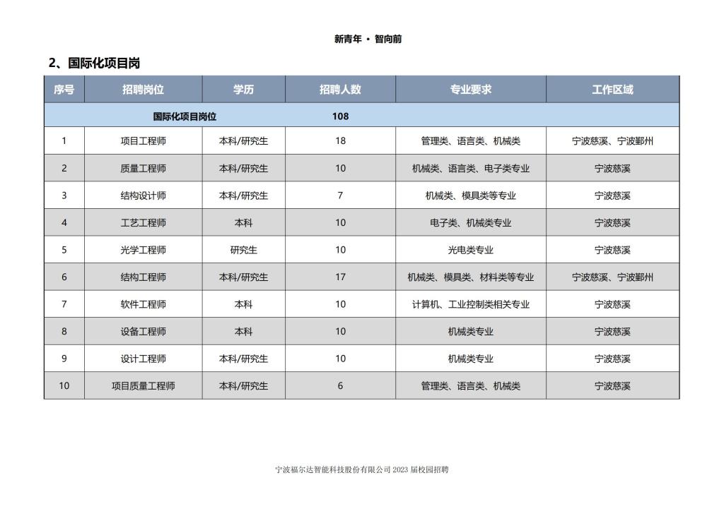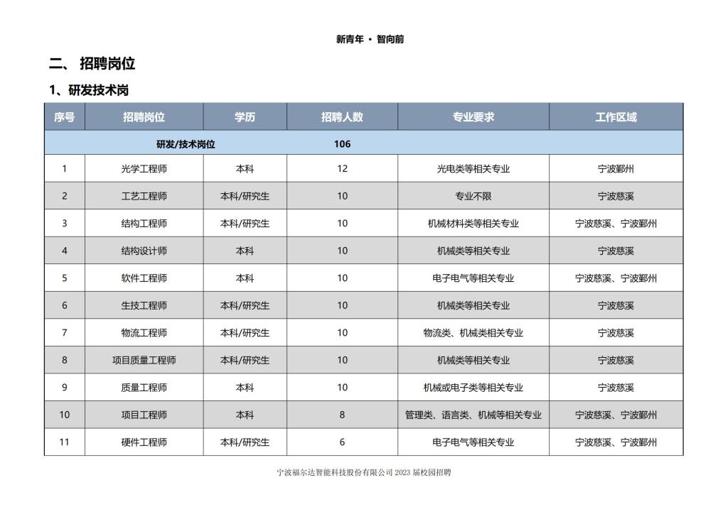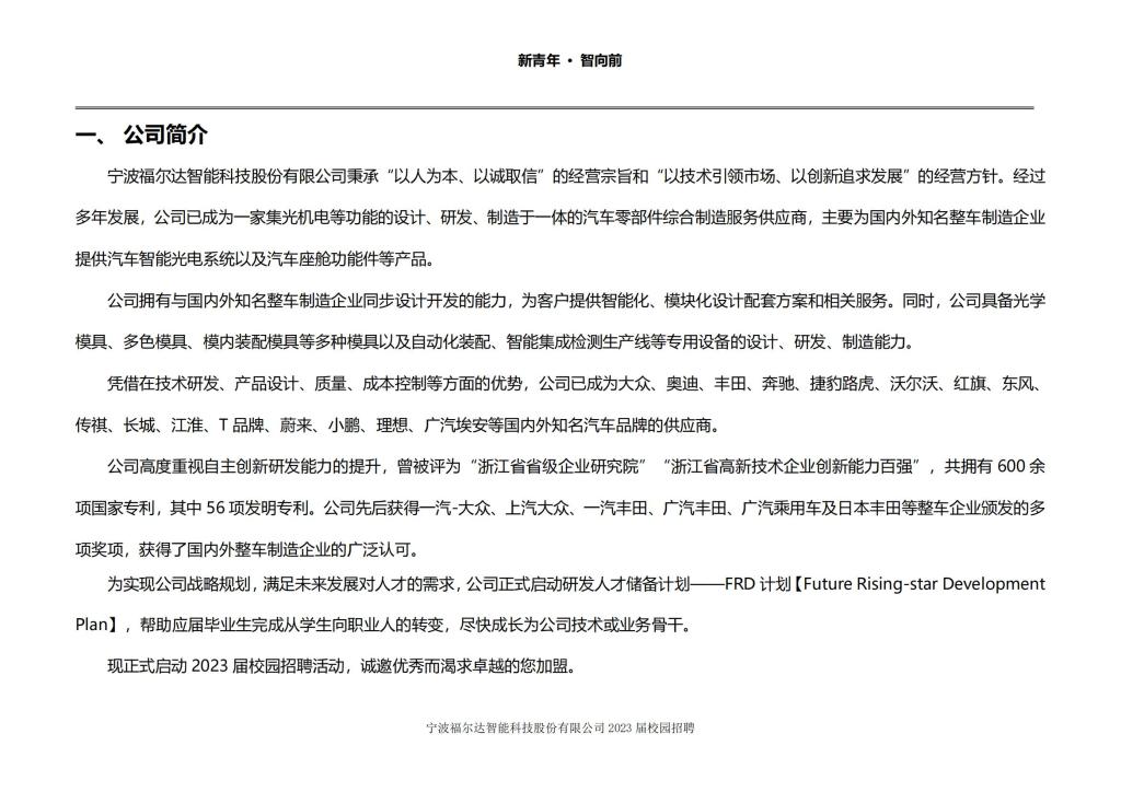寧波福爾達(dá)智能科技股份有限公司2023屆校園招聘
