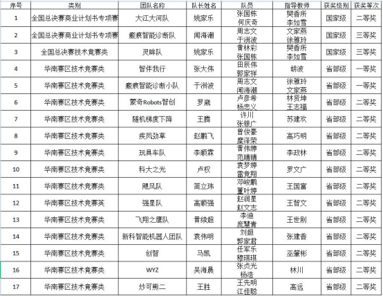 7月中旬華南賽區競賽正式開始。在技術類競賽中,我校23個研究生團隊脫穎而出,3個團隊勇奪省級一等獎,12個團隊獲二等獎,8個團隊獲三等獎;在商業計劃書專項賽中,共有42個研究生團隊獲獎,其中3個團隊勇奪省級一等獎、18個團隊獲二等獎、21個團隊獲三等獎。9月下旬在全國總決賽中共有3個作品獲獎,其中《自動駕駛汽車路面目標智能檢測系統》獲得全國總決賽二等獎,《基于改進GoogLeNet的瘢痕評估系統》以及《惡劣環境下自動駕駛技術智能檢測系統》獲得全國總決賽三等獎。