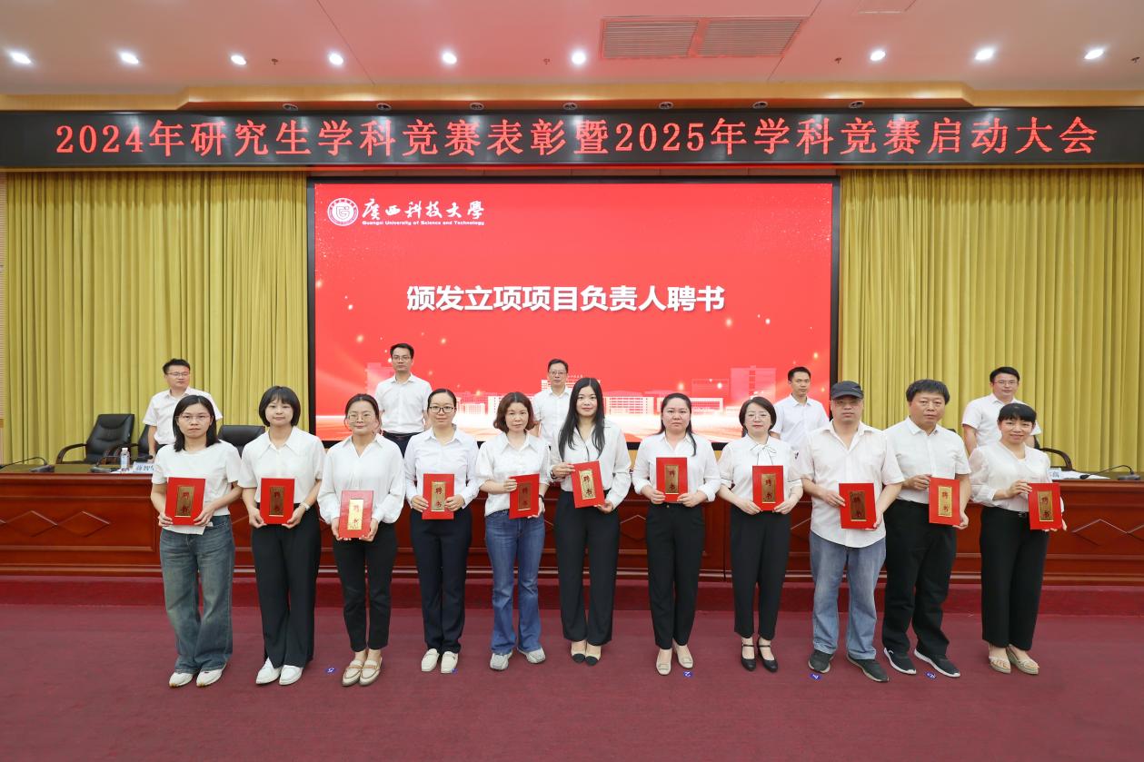研工部(院)部(院)長廖志高宣讀了2025年研究生學科競賽立項項目通知,與會領導向立項項目負責人代表頒發聘書。