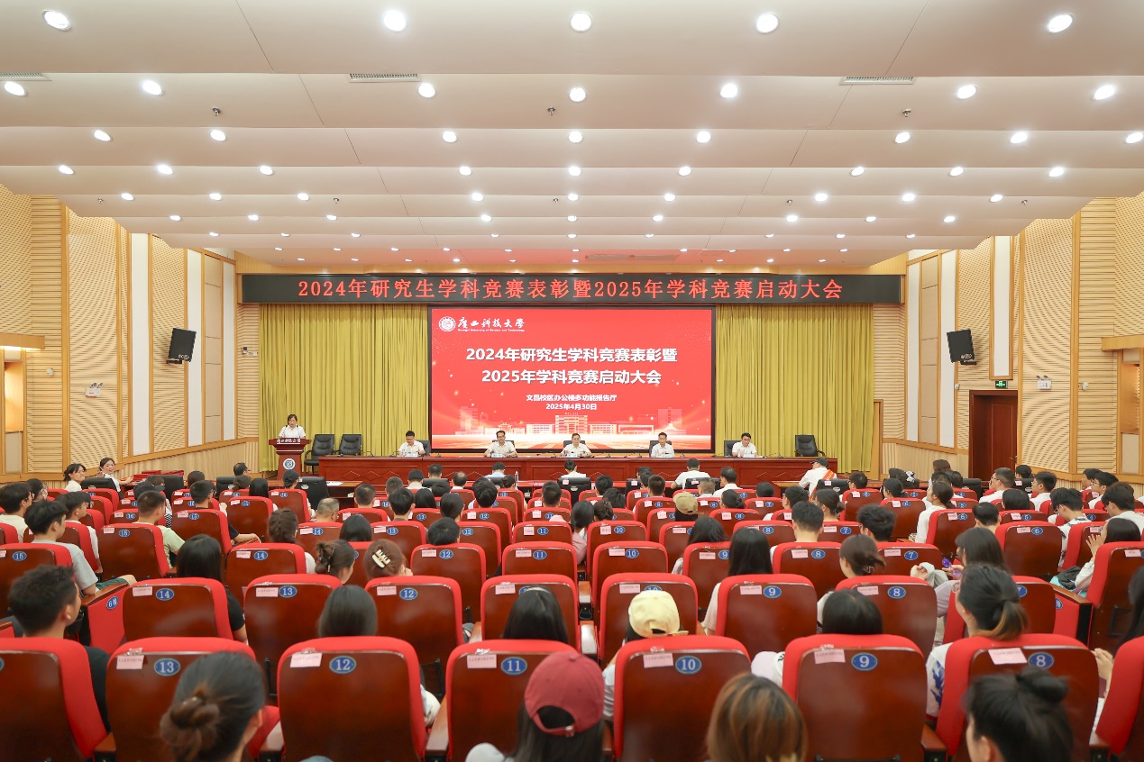 4月30日上午,廣西科技大學隆重舉行2024年研究生學科競賽表彰暨2025年學科競賽啟動大會。校黨委常委、副校長李健,宣傳部、學工部(處)、研工部(院)、校團委負責人,各二級學院領導以及師生代表們齊聚一堂,共同回顧過去一年學科競賽的豐碩成果,展望2025年的新征程。