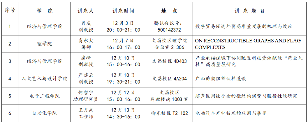 廣西科技大學2024年12月份研究生學術講座預告(一)