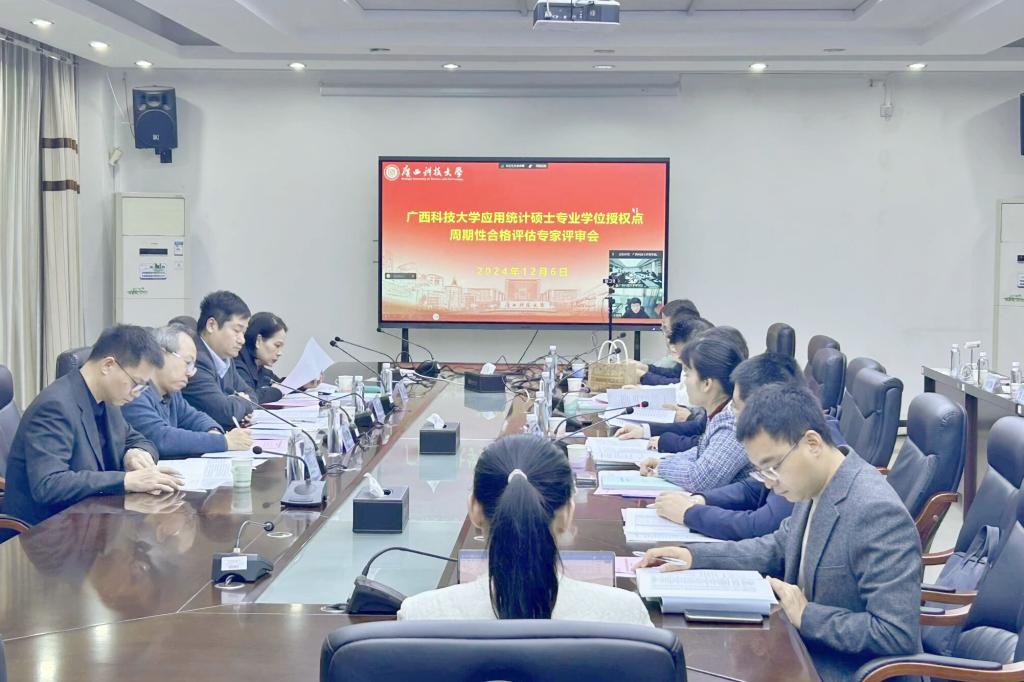 12月6日,學校應用統計碩士專業學位授權點周期性合格評估專家評審會在文昌校區辦公樓6—1會議室召開。中國人民大學統計學院王曉軍教授、廣西師范大學張軍艦教授、桂林理工大學蔣遠營教授、柳州市統計局黃俊高級統計師、廣東泰迪科技股份有限公司張良均正高級工程師等受邀擔任評審專家。學校黨委常委、副校長李健出席會議。